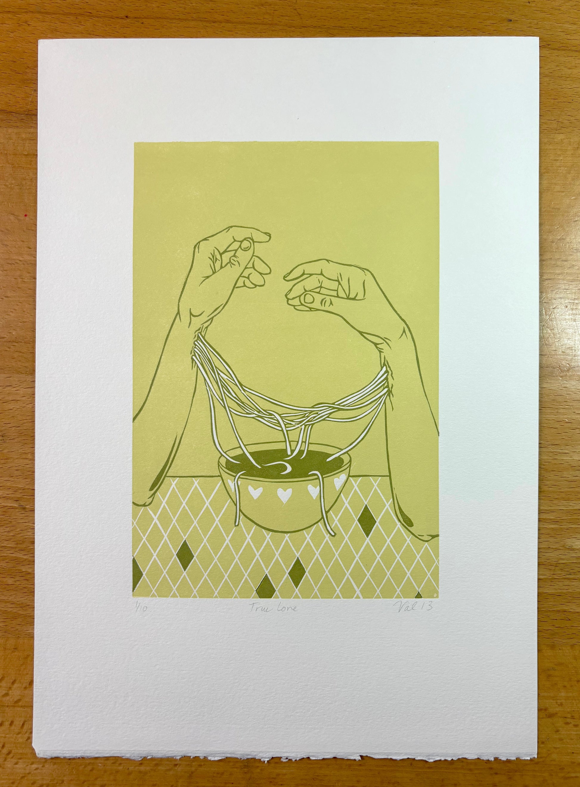 Reduction linocut on Fabriano cream paper